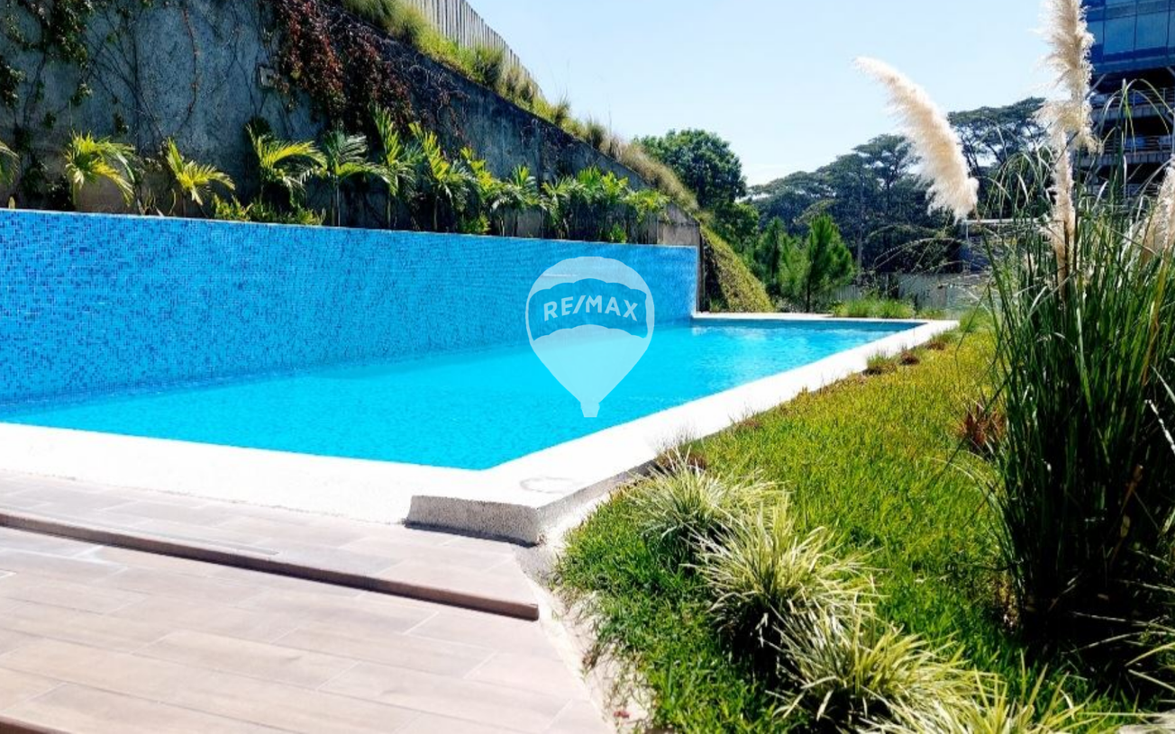 2 habitaciones: Habitación principal: baño privado, A/C y walk-in closet. Habitación Jr con A/C, closet y balcón. 3 baños completos, Terraza con increíble vista, Área de lavandería, Calentador de agua, Cortinas black out. 2 parqueos techados, Pet Friendly.